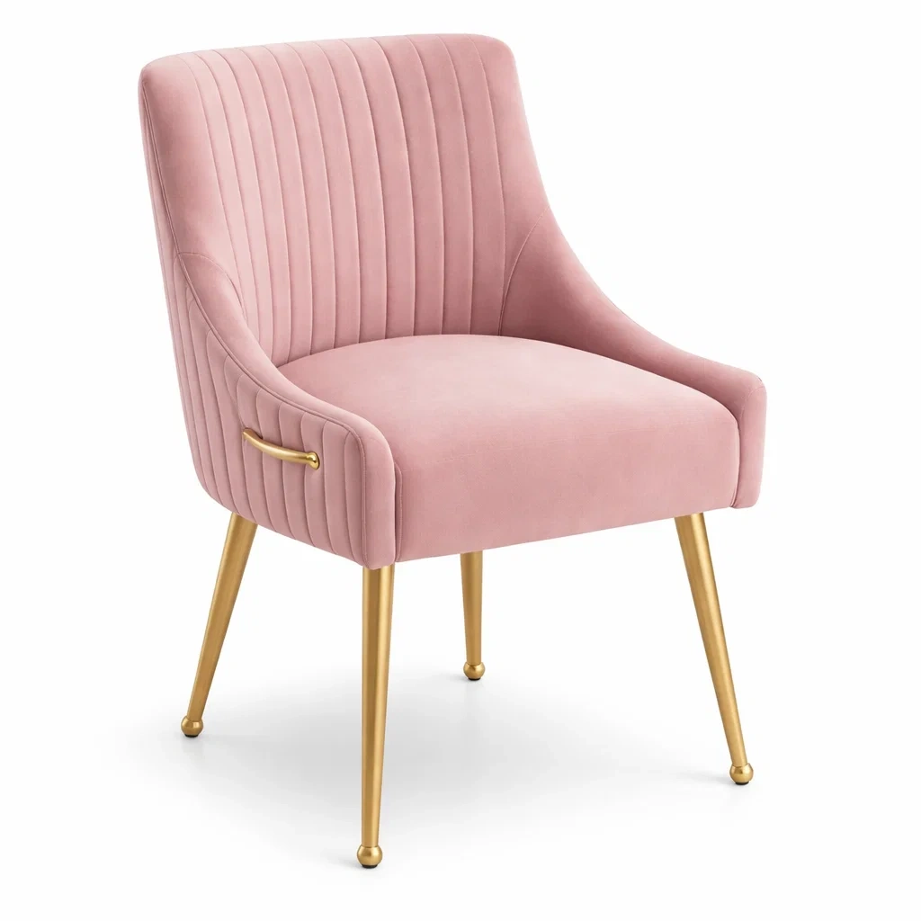Chaise de salle à manger en velours rose avec pieds en métal doré