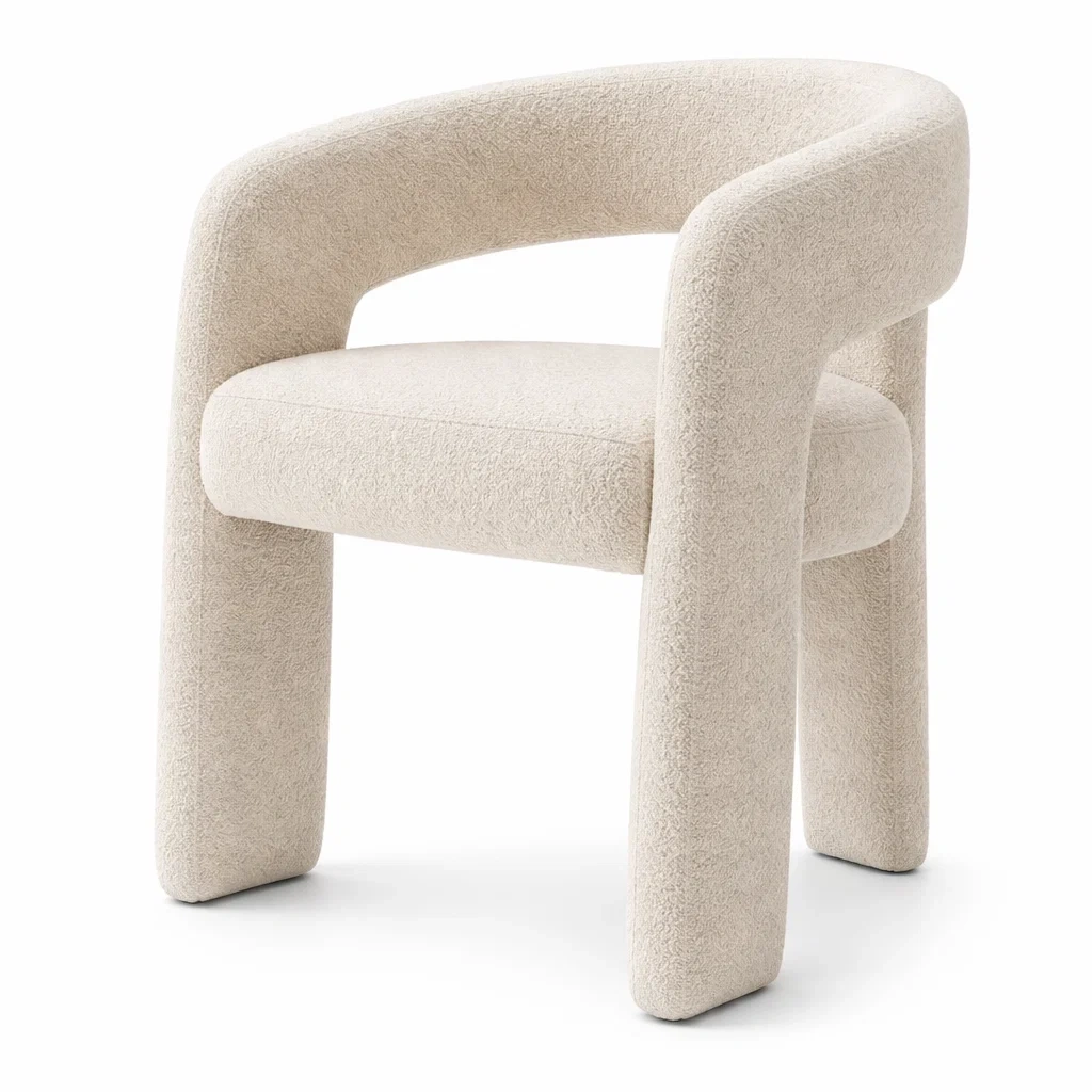 Chaise de salle à manger en bouclette crème avec accoudoirs