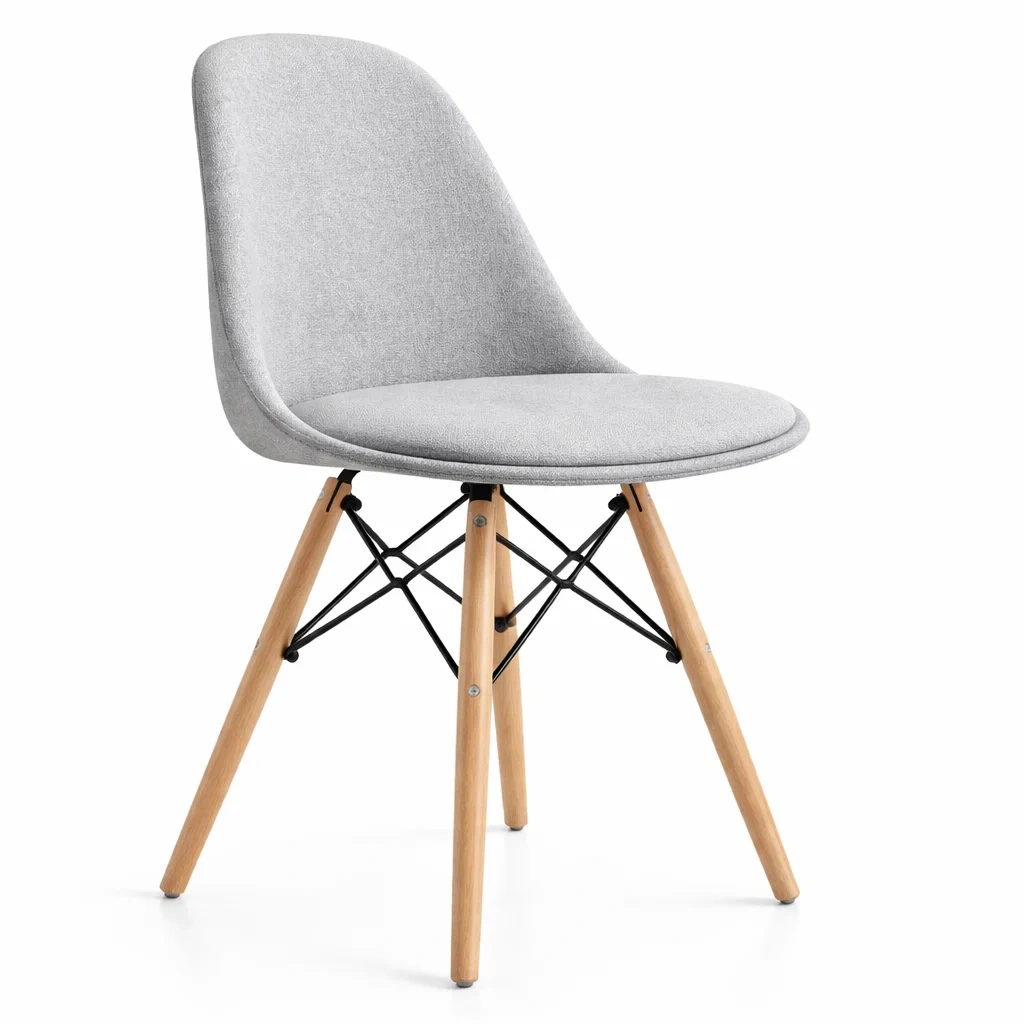 Chaise de salle à manger en tissu gris avec pieds en bois