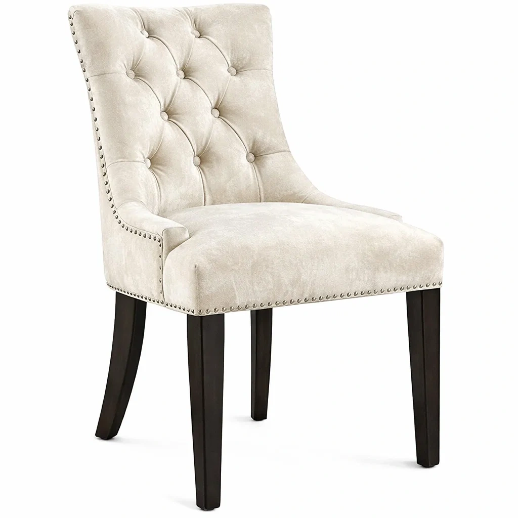 Chaise de salle à manger en bois et velours beige